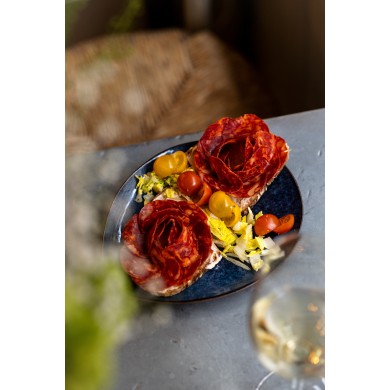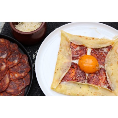 돼지고기의 부위를 잘게 다져 마늘과 칠리파우더, 소금, 후추, 피망, 향신료 등을 섞어 맛을 내고 건조, 훈연하여 만든 스페인 전통 소시지입니다.