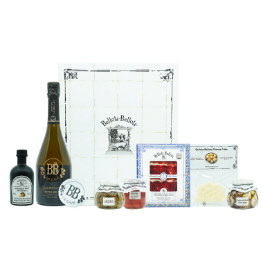 BB La Cave 엑스트라 브륏 프리미에 크뤼 샴페인 750ml, 이베리코 베요타 하몽 30g, 벨로타 치즈 큐브 50g, 발사믹 무스카트 250ml, 케이퍼베리 240g, 블랙 갈릭인 올리브오일 240g, 레드 페퍼 피퀴요 185g, 드롭스탑