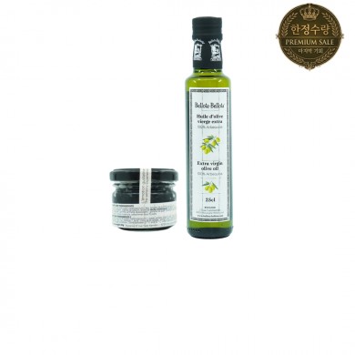 Bellota Friday 파격 세일인 번들상품으로 아르베키나 품종 엑스트라버진 올리브오일과 트러플의 결정체인 트러플 펄로 구성된 상품입니다.